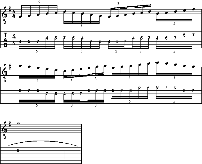 Tipp: Wenn du die Vorübungen gewissenhaft durchgezogen hast, solltest du eigentlich soweit präpariert sein, dass dir das Übertragen der Idee auf eine komplette Skala keine Probleme mehr bereitet. Der beste Tipp, den ich dir mit auf den Weg geben kann, ist kurz und schmerzlos: Bitte langsam üben! So, du Quintolen-Junkie. Das war's schon. Aber was soll's, wir sehen uns ja nächste Woche wieder! Bis bald Hansi Tietgen