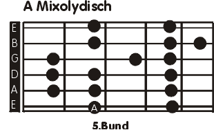 Ich denke die Blues Scale dürfte dir als eingefleischtem Planet Guitar User mittlerweile hinlänglich bekannt sein. Aber was zum T. ist A Mixolydisch. Na ganz einfach. Formulieren wir es einmal volkstümlich: Die Mixolydische Tonleiter startet auf der V. Stufe jeder gemeinen Dur-Skala. Wenn du also eine Dur-Tonleiter drauf hast ist dir zwangsläufig auch die mixolydische Skala bekannt. Da es sich in unserem speziellen Fall um die A Mixolydische Tonleiter handelt werden wir entsprechend in D-Dur fündig. Warum? Na ganz einfach. Der Ton A ist der fünfte Ton der D-Dur Skala, oder fachlich korrekt bezeichnet die V.Stufe. Apropos Fachleute. In gut informierten Kreisen firmiert die Skala unter dem Kirchentonleiter bzw. Mode. .